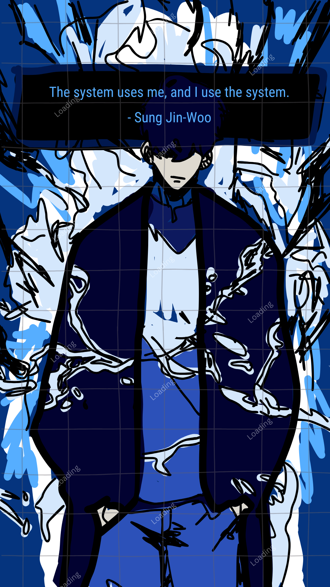 - Sung Jin-Woo’s Ascending Power: Ascend to a new level of aesthetic with this highly detailed Sung Jin-Woo wallpaper from Solo Leveling. This artwork captures the aura of the Shadow Monarch with intricate blue and white patterns swirling around him, reflecting his immense and evolving power. Paired with his iconic quote, “The system uses me, and I use the system,” this wallpaper embodies strategic mastery and relentless progression.